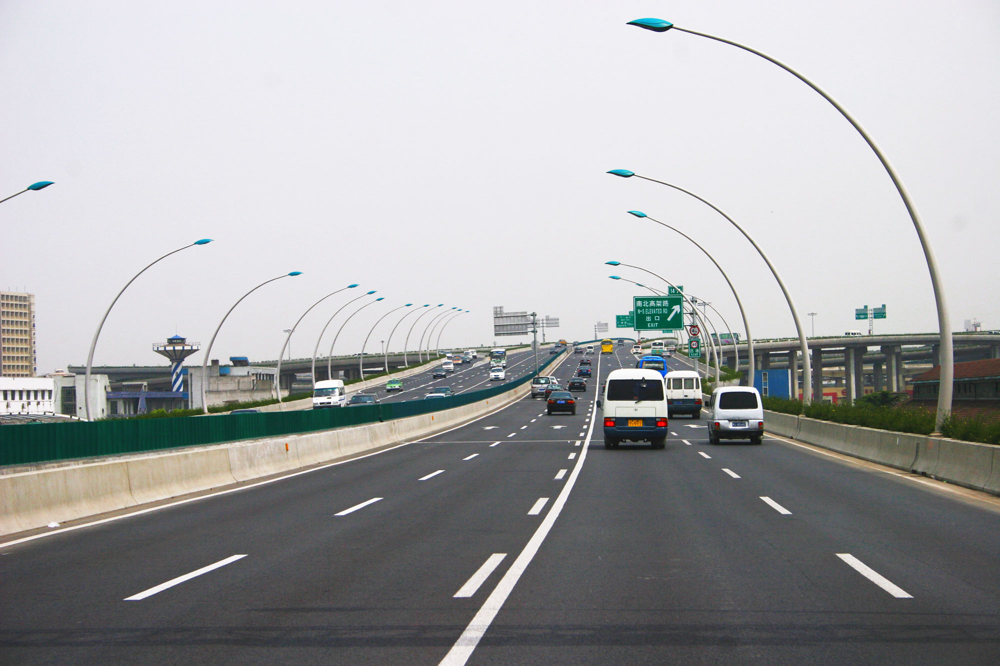 浦東段南段全長(zhǎng)15.6km,高架及地面道路均為雙向8車(chē)道,含全互通立交4座,菱形立交4組。該段工程是上海市浦東新區(qū)首條按“和諧交通”、“科技創(chuàng)新”、“景觀優(yōu)美”、“生態(tài)環(huán)保”建設(shè)的城市快速路。