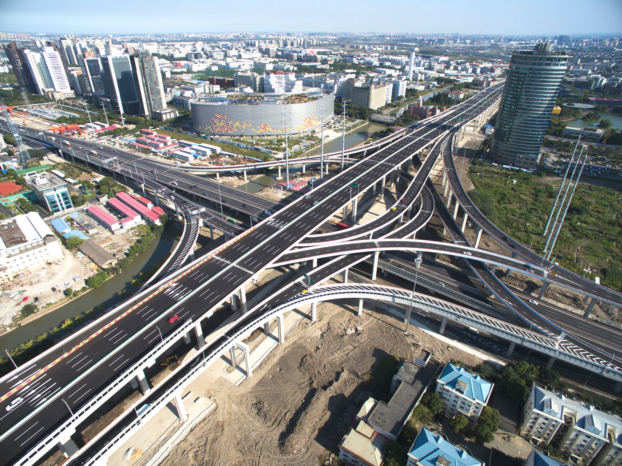 中環(huán)線浦西段全長(zhǎng)15.6km,主線雙向8車(chē)道,設(shè)立交4座、8對(duì)進(jìn)出匝道。采用地面+地道的方式,較好地改善沿線道路景觀;優(yōu)化道路線形,改善了上海中學(xué)及沿線建筑環(huán)境;對(duì)虹梅路原立交作盡可能小的影響,分期解決立交轉(zhuǎn)向交通需求;立交處橋梁立柱見(jiàn)縫插針,利用老橋橋面和架橋機(jī)技術(shù)架設(shè)大跨徑主梁。