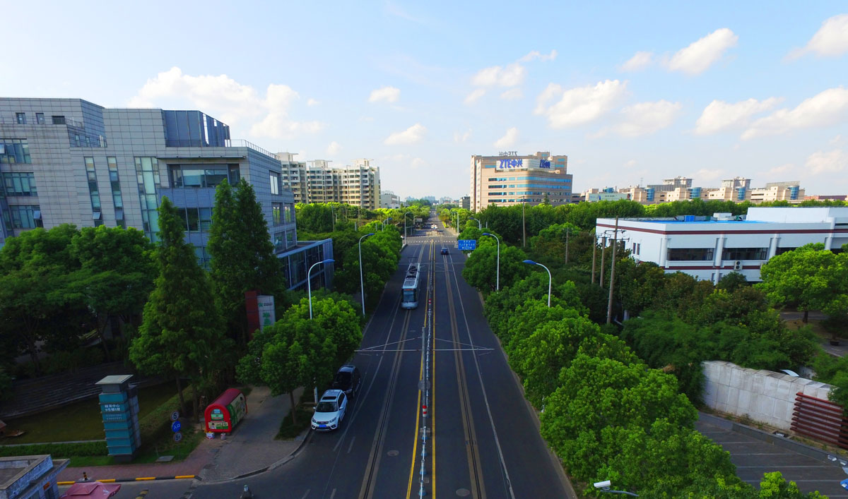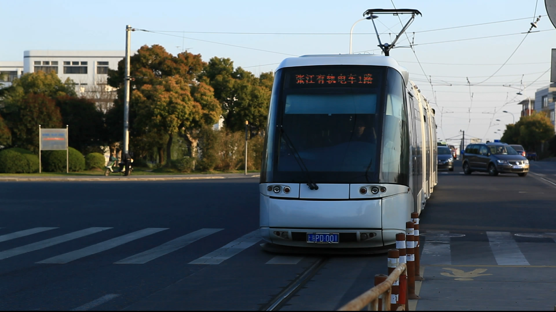張江現(xiàn)代有軌交通系統(tǒng)是區(qū)域二級(jí)快速公共交通主干線網(wǎng)絡(luò),具有人性化、快速化、綠色化的特征。一期工程接駁軌道交2號(hào)線張江高科站,終于金秋路站,長約9公里,設(shè)15座車站。采用混合路權(quán)的膠輪導(dǎo)軌系統(tǒng),車輛為100%低地板,最高運(yùn)營速度為70km/h, DC750V接觸網(wǎng)供電。車輛基地占地面積約3ha,運(yùn)營管理采用公交模式。