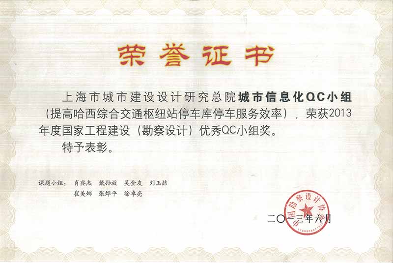 國家工程建設(shè)(勘察設(shè)計(jì))優(yōu)秀QC小組獎(jiǎng)優(yōu)秀獎(jiǎng)