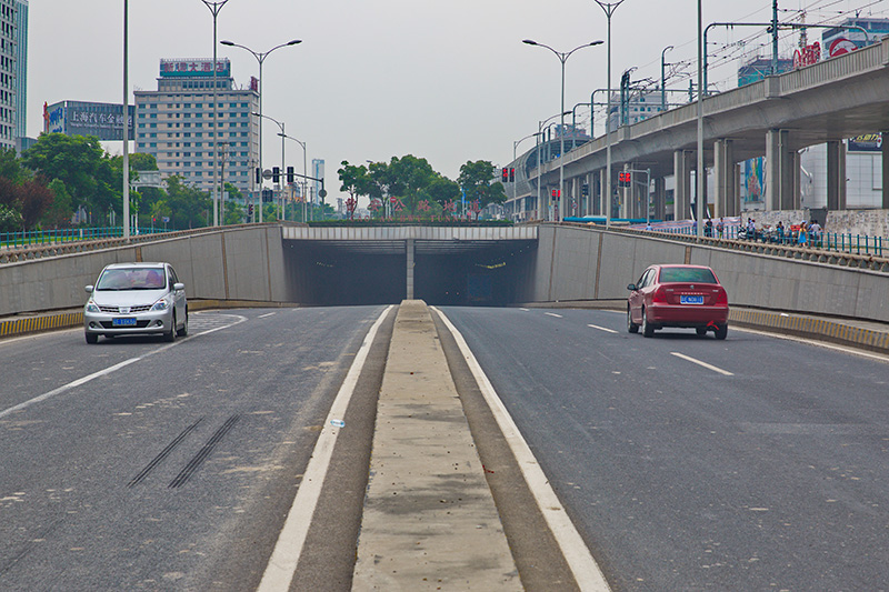 地道西側(cè)敞開(kāi)段與安亭涇相交處設(shè)過(guò)水箱涵,地道暗埋段上方設(shè)過(guò)街天橋。工程沿線除南側(cè)有11號(hào)線高架結(jié)構(gòu)外,兩側(cè)地面道路下有排水、上水、煤氣等市政管線。