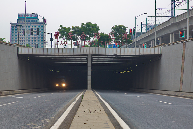 地道位于安亭墨玉路和新源路間的曹安公路下,雙向4車(chē)道,設(shè)計(jì)行車(chē)速度60km/h。總長(zhǎng)910m,其中暗埋段長(zhǎng)490m,最大基坑開(kāi)挖深度約11.5m,結(jié)構(gòu)形式為單箱雙孔箱型結(jié)構(gòu);敞開(kāi)段長(zhǎng)420m,最大基坑開(kāi)挖深度約7.5m?;拥装逦挥冖刍疑倌噘|(zhì)粉質(zhì)粘土層。