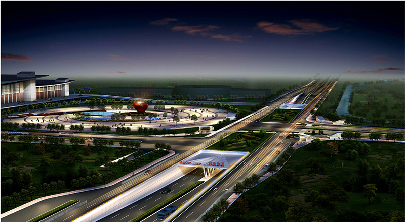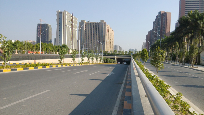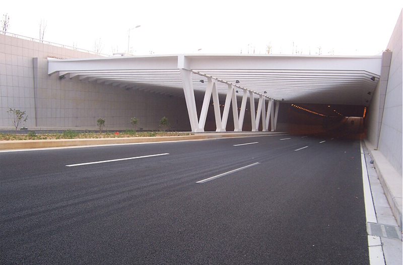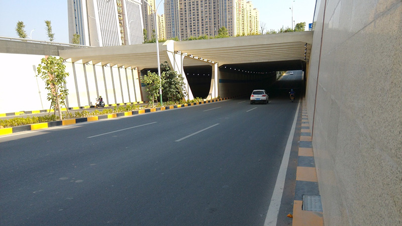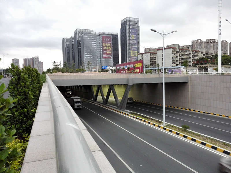 福廈鐵路新泉州火車站站前大道為城市快速路,雙向8車道,設(shè)計(jì)行車速度60km/h.。全線有6個(gè)車行和人行、非機(jī)動(dòng)車地道,其中東西大道地道總長(zhǎng)680m,為矩形結(jié)構(gòu),道路下立交。