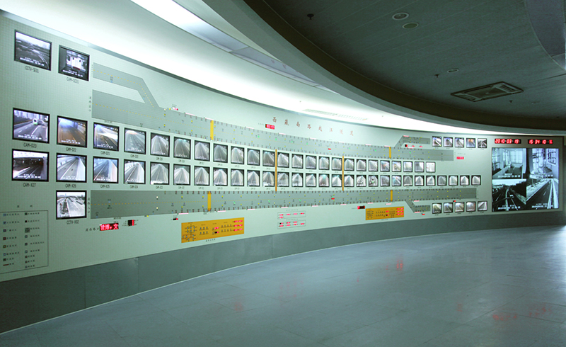 上海西藏南路越江隧道為雙管單層圓形汽車隧道,總長2.6km。供電系統(tǒng)在浦東、浦西各設(shè)一座地下10kV變電所,兩側(cè)電源均能做到互相備用。照明系統(tǒng)采用集控方式,能在車流較少的時(shí)段均勻降低亮度,節(jié)省能耗。綜合監(jiān)控系統(tǒng)包括電力監(jiān)控、設(shè)備監(jiān)控、交通監(jiān)控、火災(zāi)報(bào)警、電視監(jiān)視、廣播、電話、無線通信等,并設(shè)置監(jiān)控中心對(duì)隧道的運(yùn)行進(jìn)行集中控制和管理。