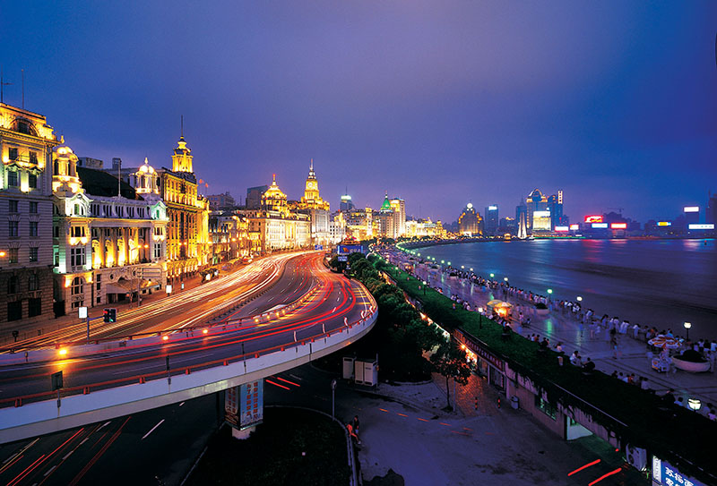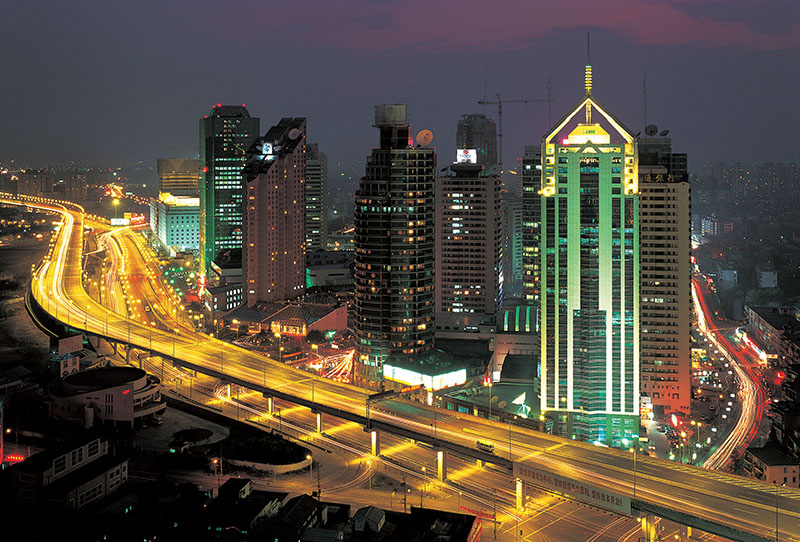 延安路高架中段全長5.56km,穿過上海市中心繁華地段。高架照明供電首次采用中壓傳輸系統(tǒng)和埋地式變壓器。特殊路段中央分隔帶采用臥式箱形照明燈具,高架兩側(cè)底邊內(nèi)鑲嵌藍色光帶照明。