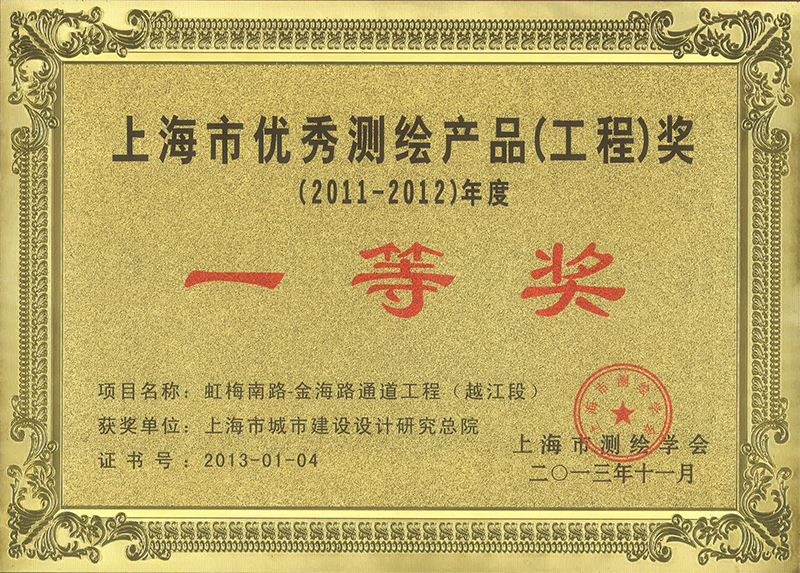 2012-2013年度上海市優(yōu)秀測繪工程獎一等獎