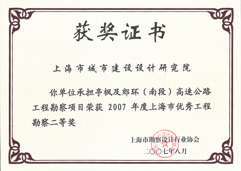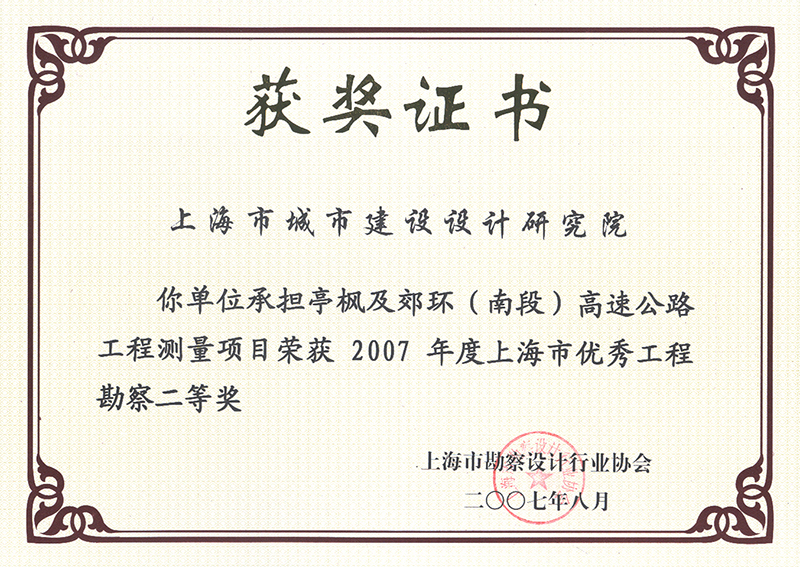 2007年度上海市優(yōu)秀工程勘察二等獎(jiǎng)