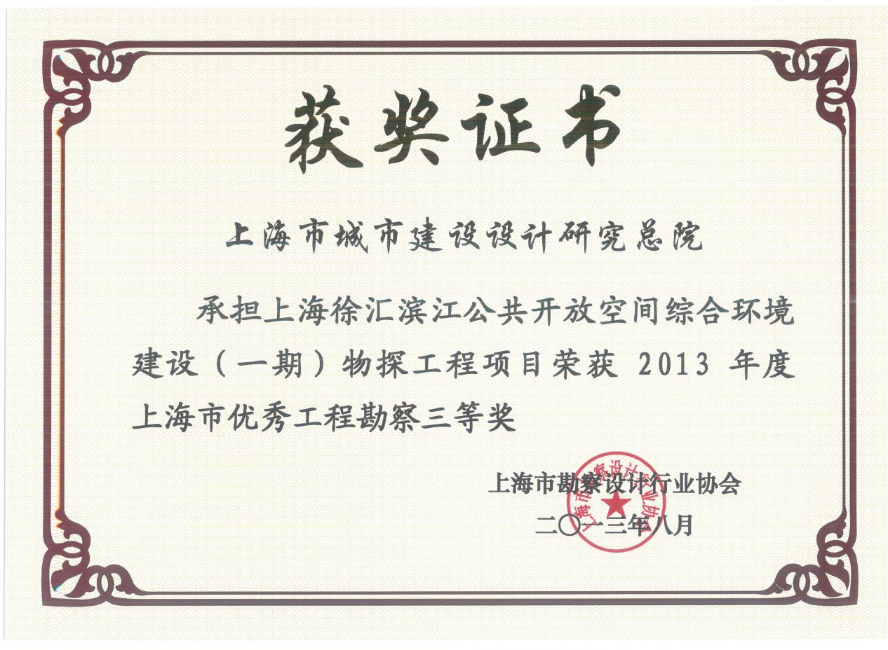 2013年度上海市優(yōu)秀工程勘察三等獎(jiǎng)