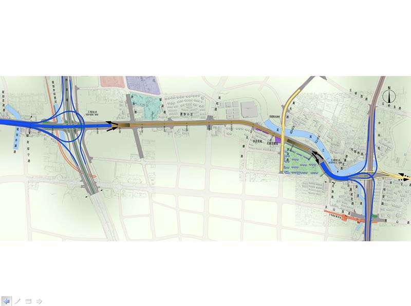 北翟路地道工程位于上海市長寧區(qū),西起現(xiàn)狀北翟路外環(huán)線立交,東至北翟路中環(huán)線立交,道路全長約2303.835m。本項(xiàng)目屬于國內(nèi)最早將BIM/VDC技術(shù)用于大型市政地道的完整案例,在提升設(shè)計(jì)質(zhì)量、整合現(xiàn)狀信息、虛擬工程建造等幾方面進(jìn)行了探索性應(yīng)用。本項(xiàng)目的BIM應(yīng)用思路新穎,探討了BIM與GIS結(jié)合、基于模型的出圖、分析及模擬;在施工階段對市政管線進(jìn)行綜合、結(jié)合現(xiàn)場開挖,提出合理的管線搬遷方案,有助于施工方案可實(shí)施性、準(zhǔn)確性的提高。