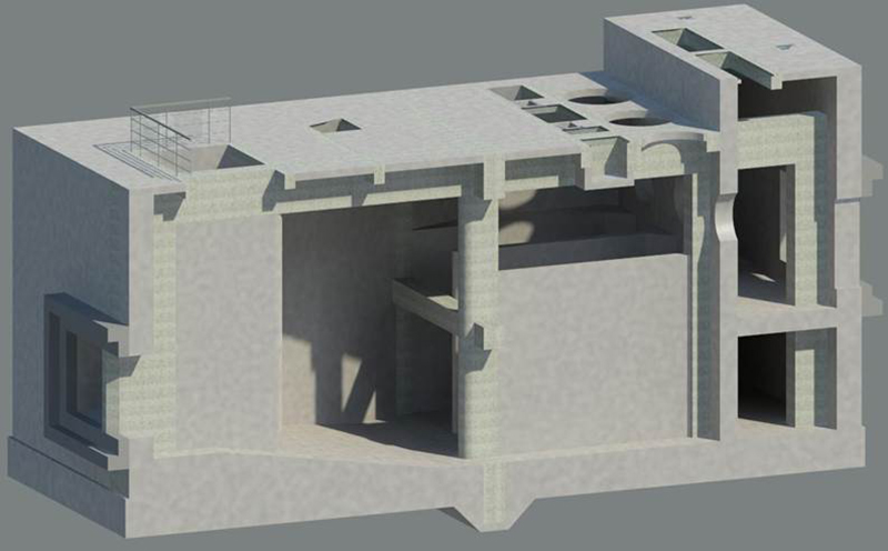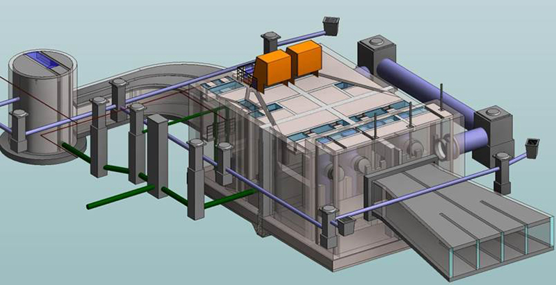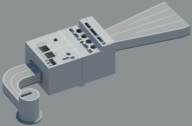 金豐城(南)雨水系統(tǒng)管網(wǎng)末端計算流量為9.57m3/s,設(shè)計配泵流量為管網(wǎng)未端計算流量的120%,計為11.48m3/s,同時在雨水泵站內(nèi)設(shè)置污水截流設(shè)施,設(shè)計規(guī)模為1850 m3/d。遷建金豐路雨水泵站設(shè)置在金豐路、蟠龍港的西北角,泵站占地面積約1785m2(合2.68畝)。本項目在設(shè)計階段應(yīng)用BIM輔助設(shè)計和出圖。