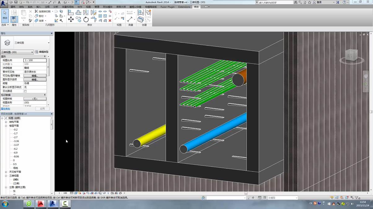 北島西路綜合管廊是臨港新城綜合管廊的先行者,也是上海申報(bào)綜合管廊試點(diǎn)城市的拳頭項(xiàng)目,具有重要的戰(zhàn)略意義。干線型管廊約20km,結(jié)合近期交通工程實(shí)施;支線型管廊約30km,主城區(qū)一環(huán)帶、綜合區(qū)先行區(qū)、海洋產(chǎn)業(yè)園區(qū)。在本項(xiàng)目的BIM實(shí)踐中處處體現(xiàn)了全生命周期的管理理念。設(shè)計(jì)階段,利用Revit直接將三維模型轉(zhuǎn)化為二維圖紙,通過碰撞檢查及時(shí)發(fā)現(xiàn)設(shè)計(jì)問題并協(xié)調(diào)解決,減少后期變更,分節(jié)段統(tǒng)計(jì)預(yù)埋件與支架工程量,輔助核對(duì)采購(gòu)清單。施工階段,通過BIM技術(shù),將臨時(shí)道路、施工場(chǎng)布提前預(yù)演,指導(dǎo)施工過程。