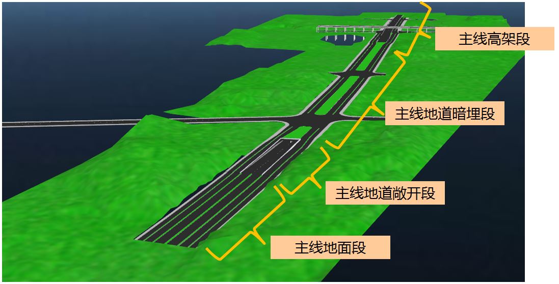 長沙市湘府路位于中心城區(qū)南部,是貫穿主城區(qū)南部區(qū)域的重要交通要道。設(shè)計(jì)范圍為湘府路(湘江東岸至黃興大道段),西起湘江東岸,東至黃興大道,路線全長約17.6公里。湘府路快速路方案采用主路為雙向六車道,輔路為雙向6車道,地面道路兩側(cè)分別設(shè)置非機(jī)動車道和人行道,供區(qū)域交通以及人、非出行。本項(xiàng)目BIM應(yīng)用旨在提升設(shè)計(jì)品質(zhì),實(shí)現(xiàn)從二維設(shè)計(jì)到三維立體設(shè)計(jì);利用BIM技術(shù)協(xié)同設(shè)計(jì),解決設(shè)計(jì)難題;為道路工程生命周期的管理提供完整的數(shù)據(jù)基礎(chǔ)。