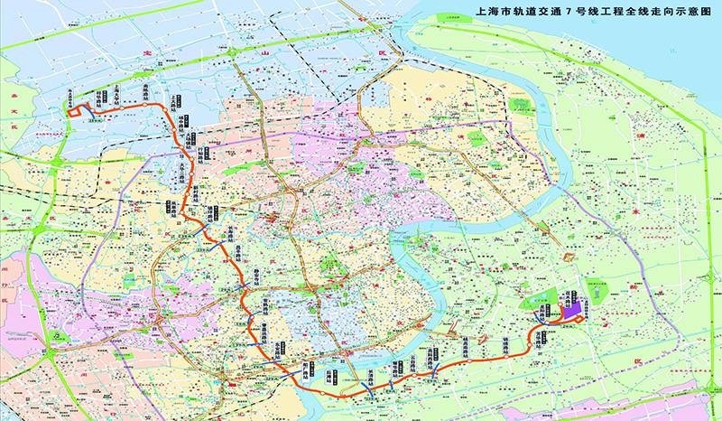 軌道交通7號線是軌道交通網(wǎng)絡(luò)中南北向骨干線,從寶山區(qū)祁華路站經(jīng)靜安寺、徐家匯等區(qū)域至浦東新區(qū)花木路站。線路全長約34.4公里,均為地下線,設(shè)站28座,與14條軌道交通線路形成換乘。選用6節(jié)編組A型車,DC1500v接觸網(wǎng)供電、CBTC信號系統(tǒng),設(shè)一處控制中心、二座主變電站和二座車輛基地。