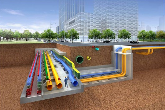 斷面大,收納熱力干管;與地下空間、過街通道結(jié)合