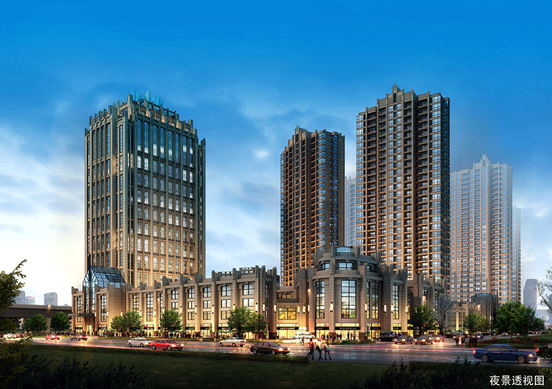 項目總建筑面積27.3萬m2 ,其中酒店建筑面積4.1萬m2,商辦建筑面積3.1 萬m2 ,住宅建筑面積14.0萬m2 ,地下車庫建筑面積6.1萬m2 。