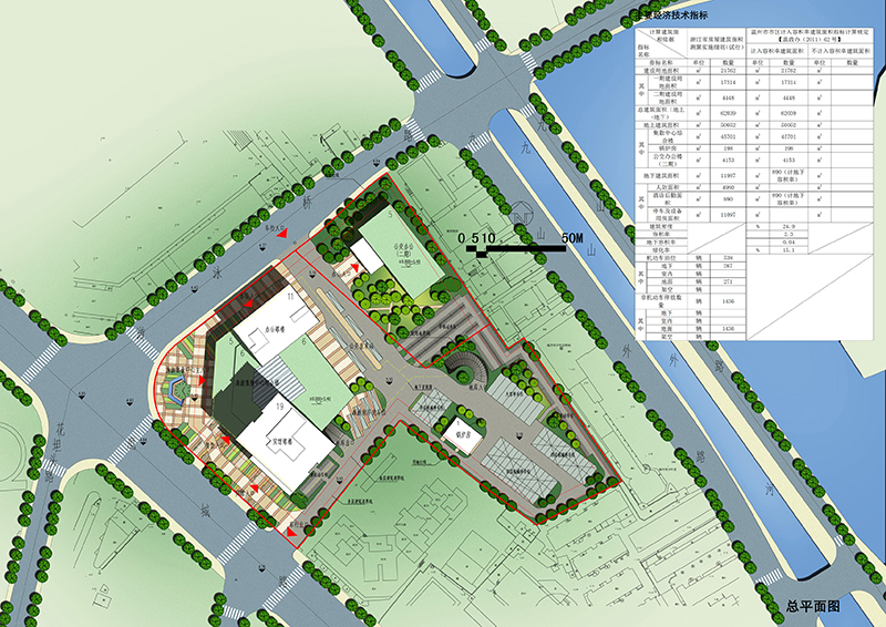 工程地上總建筑面積50052平方米,地下總建筑面積11987平方米,主要由綜合樓、公交辦公樓、公交首末站、停車場等組成,其中公交辦公樓為二期建設。綜合樓由6 層底座和兩座分別為12 層及19 層塔樓組成,主要功能包括旅游集散中心(包括商業(yè))、辦公用房、賓館(配套及客房)等。