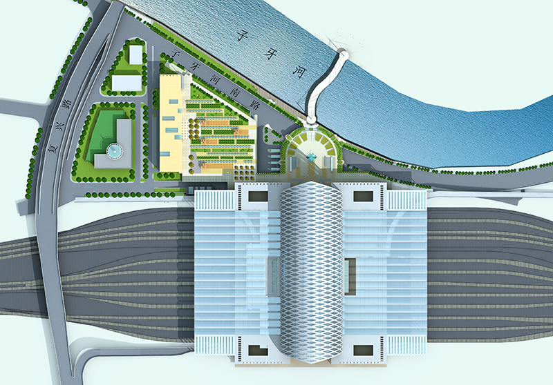 天津西站交通樞紐北廣場包括出租車蓄車場、社會停車場、北廣場進站高架平臺及跨子牙河南路高架平臺、站房西側(cè)出租車地下接客區(qū)出口通道、基本站臺以北行包房通道及行包車停車場及非機動車停車庫。