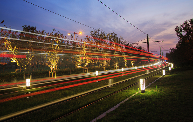 首創(chuàng)采輕型有軌電車接觸網(wǎng)設(shè)計,優(yōu)化接觸網(wǎng)的立柱、懸掛等設(shè)計,加強項目與環(huán)境的融合,有效降低工程投資。