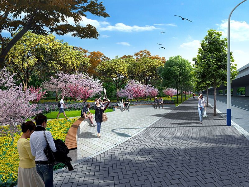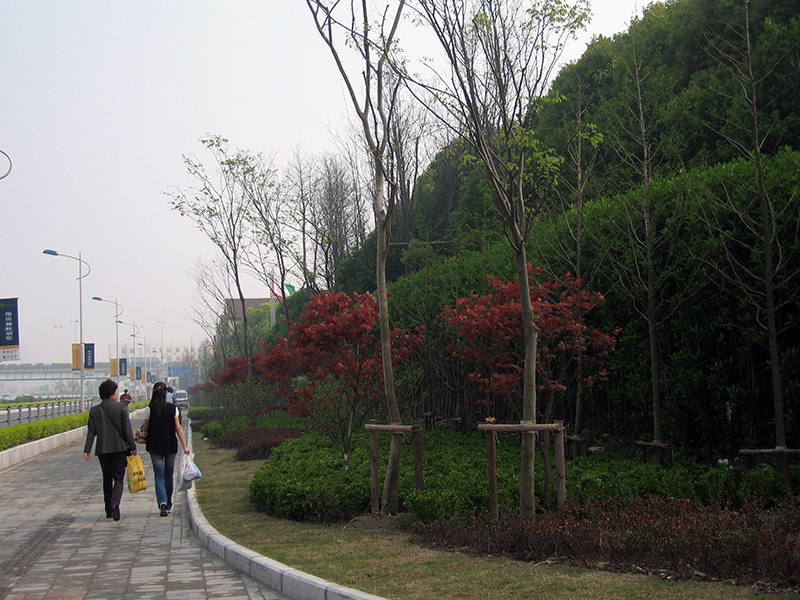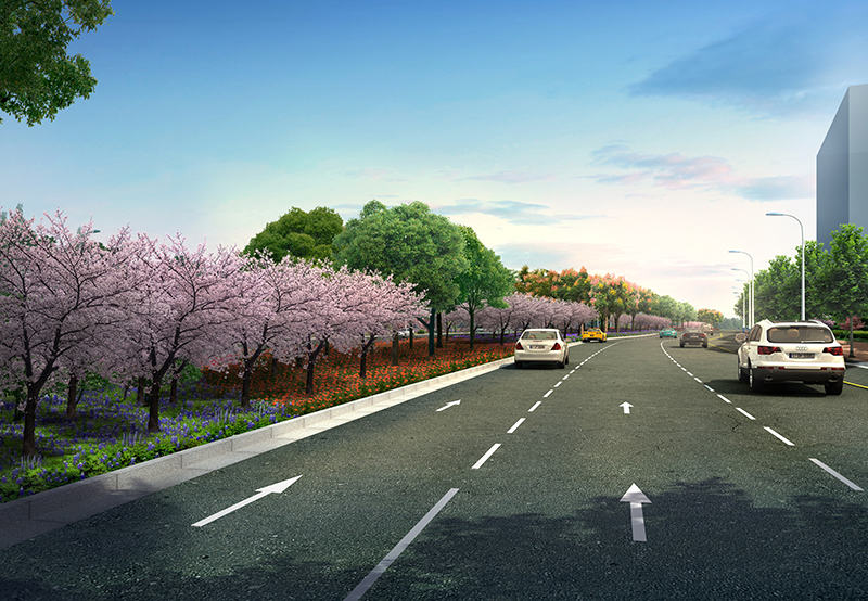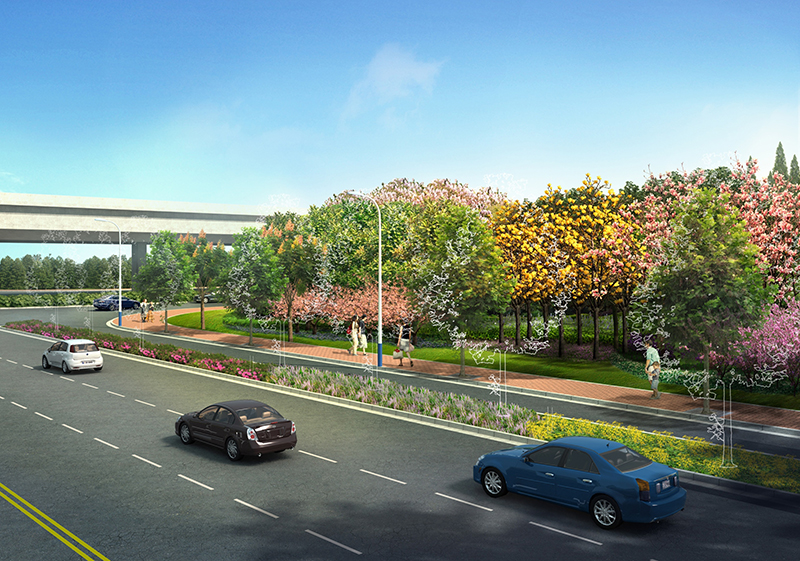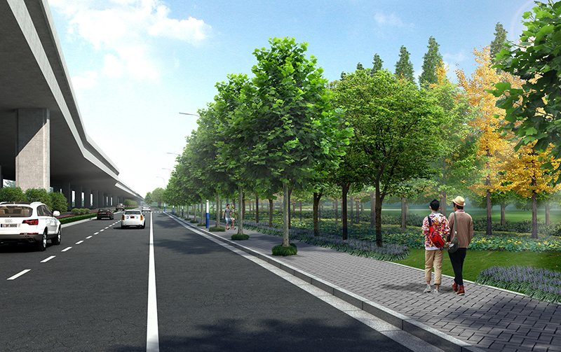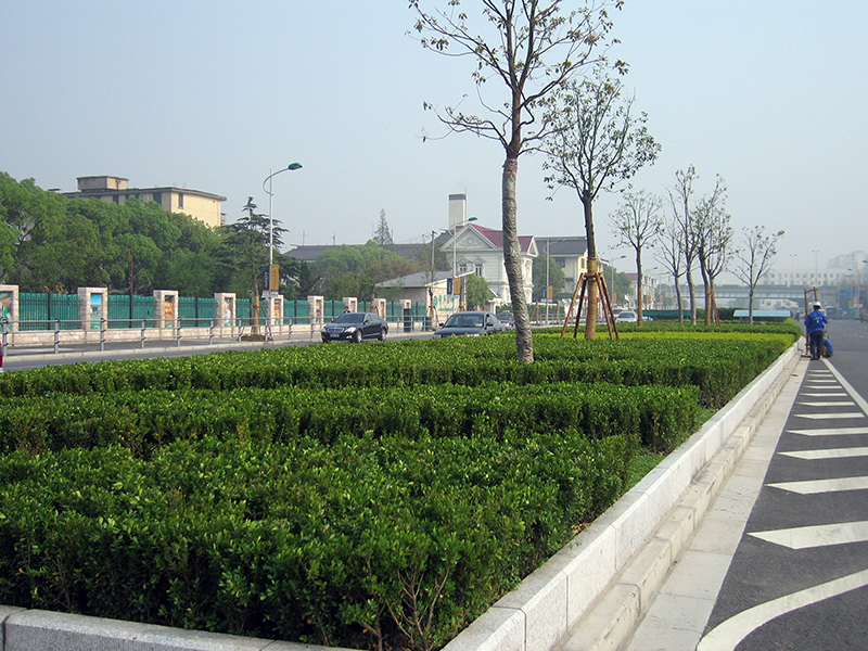 本項目包含長約23公里的中環(huán)線(浦西段)萬榮路以西-上中路隧道綠化工程,和長約9.5公里的(浦東段)市政附屬綠化及兩側(cè)綠帶。地面道路綠化布置充分考慮車輛在行駛中產(chǎn)生的景觀方向性,以斜向種植的手法,增加道路觀賞面景觀的豐富性。高架橋蔭下摒棄常用的綠籬形式,選擇耐蔭植物以自然團狀的形式,達到植物品種的多樣性。沿線行道樹的選擇則在詳細分析道路走向和兩側(cè)建筑的環(huán)境狀況后,分段選擇適合各區(qū)立地條件的植物品種。