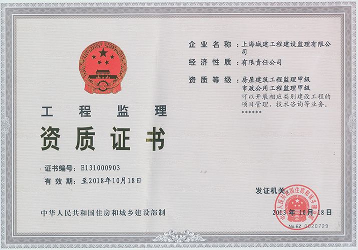 工程建設(shè)監(jiān)理資質(zhì)甲級(jí)
