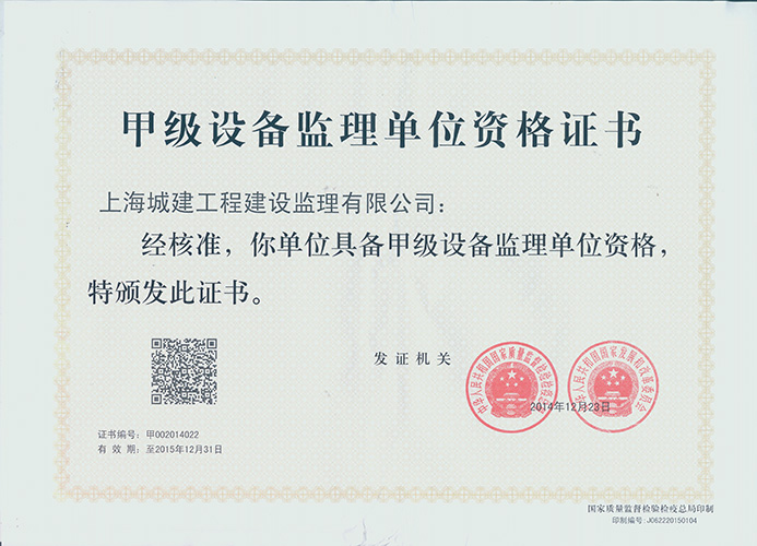 工程設(shè)備監(jiān)理資質(zhì)甲級(jí)